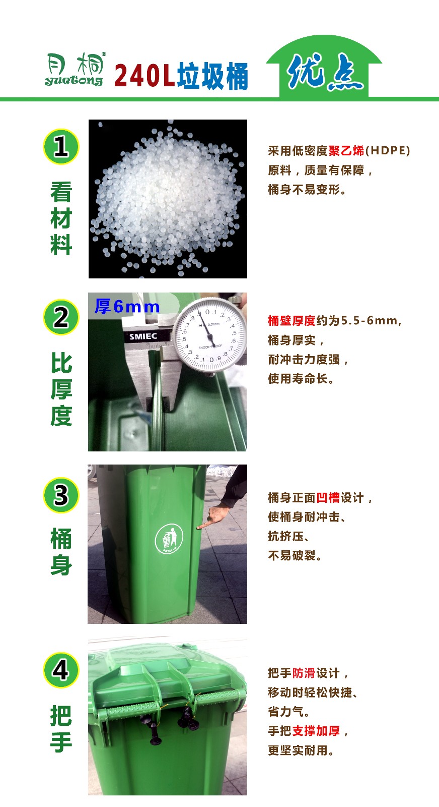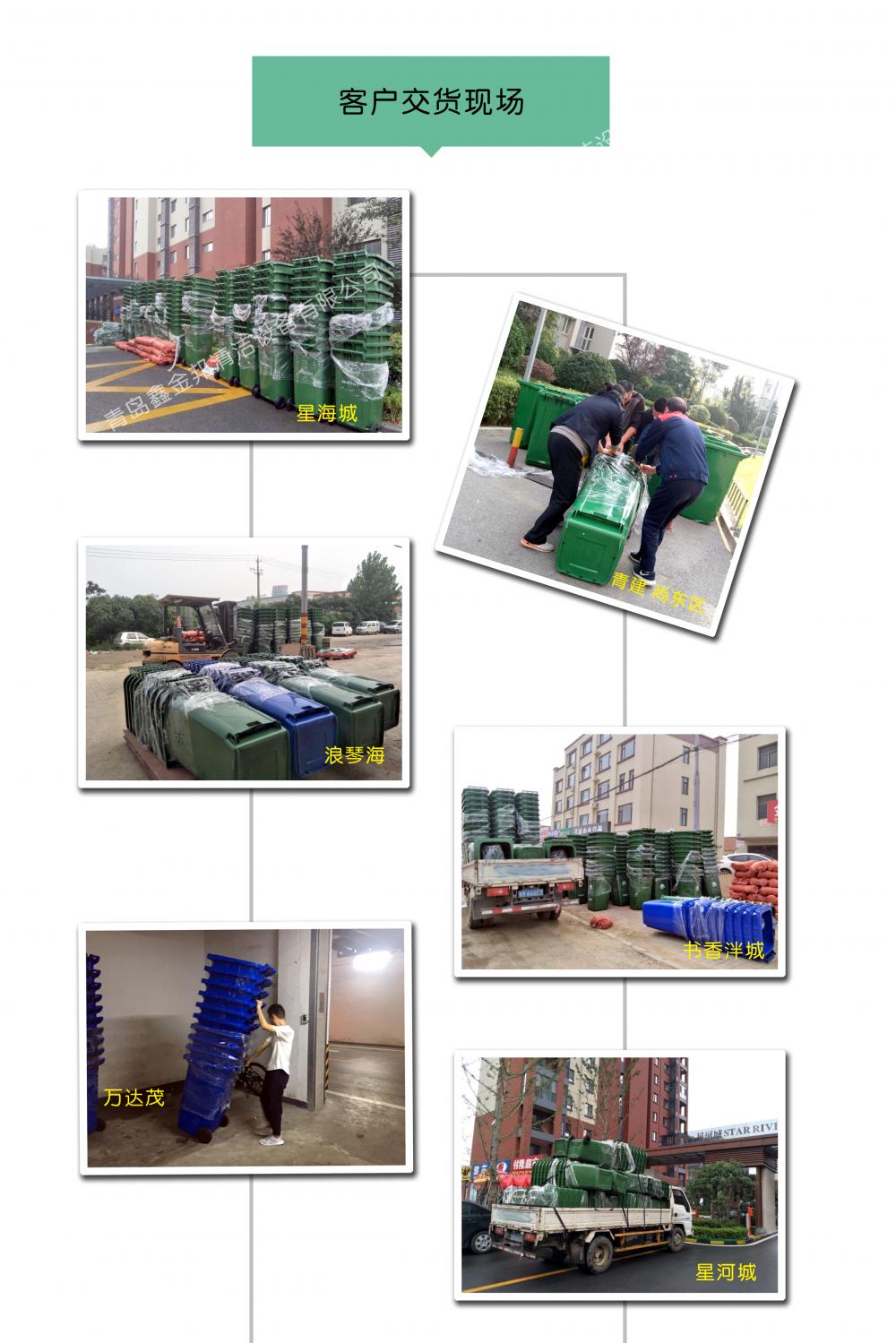 240升塑料垃圾桶采用環(huán)保材料特別加厚注塑而成,桶身表面光滑,方便環(huán)保人員清理。底部裝有靜音輪子,方便運(yùn)輸,使用壽命長(zhǎng),可配合和垃圾車使用。適用于:物業(yè)小氣、廚房、街邊等。青島鑫金邦垃圾桶質(zhì)量無(wú)憂、信譽(yù)有保障,歡迎來(lái)電咨詢!